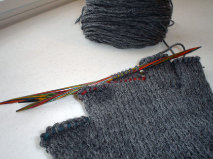 /These gloves are almost finished and, by proxy, so is my Christmas knitting. Once the fingers are knit and the ends woven in, I’ve just got a few more ornaments to make and I am done. Just in time for Christmas too.