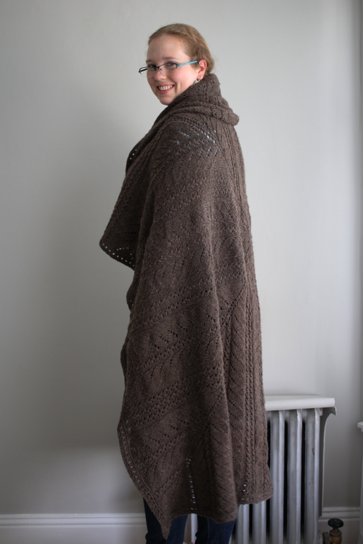 Joking aside, I’m so glad this blanket is finally done. It was one of the few things I hauled cross country in the trunk to Los Angeles. Didn’t work on it much more before I moved to San Francisco, but Ididn’t want to move again with it still on the needles. Part of the reason Norma took so long was because I wanted to use up 4 skeins of Lion Brand Nature’s Brown Fisherman’s Wool. Knitting all 1860 yards meant I worked the expanded chart available on Ravelry before charting out an additional 24 rows and then working the edging. Having to bind off 820 stitches was definitely worth it.