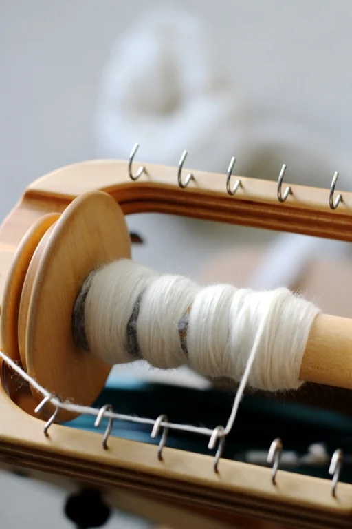 My end goal is to spin a 2-ply fingering weight yarn. Getting the wheel set up in the beginning with just the right amount of tension and twist took some fiddling. The first setting put twist into the fiber but didn’t pull it onto the bobbin. The second adjustment had too much twist and not enough uptake. The third attempt, on a larger whorl setting, was just right with enough twist and enough uptake.
