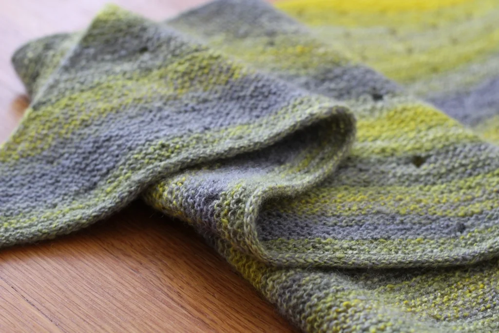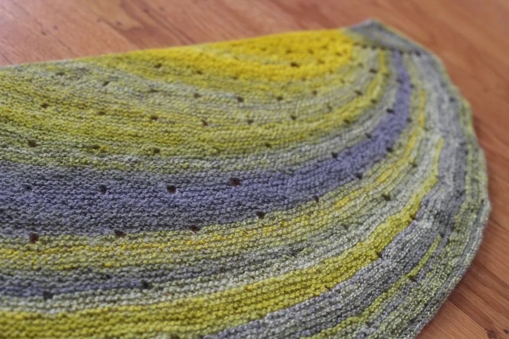 Dotted Rays wasn’t the first shawl I knit out of this handspun skein. The first was a pattern of my own design that I’d sketched and knit a mini sample of. I happily cast on, knit several inches of it’s crescent shaped body before deciding the edge increases just weren’t quite right. Rip it. Rip it. On my second attempt, I got a little farther before I needed the needles for another project. When I came back to the shawl again, the love was gone. If I wasn’t enjoying my own design, I couldn’t expect anyone else to either. The to be frogged shawl went into a bag that went under the bed to await it’s fate.