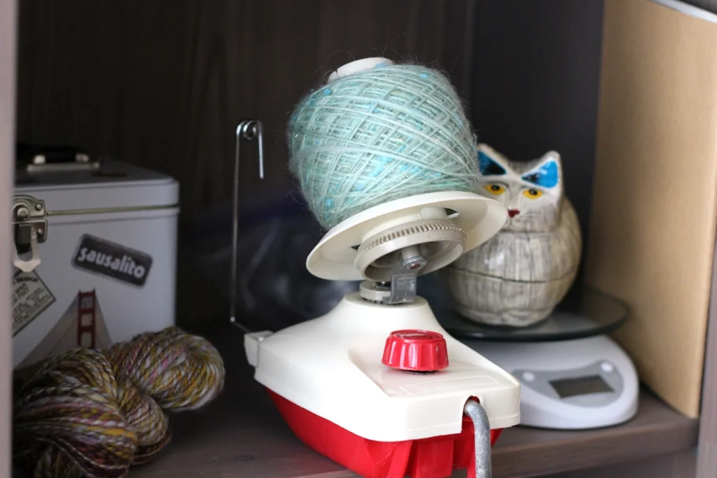 Step 2: Winding skeins. The only bit of yarn I dyed in a skein, was the only bit of yarn that wasn’t constantly bleeding more dye after multiple rinses. So, all the balls of yarn are getting turned into skeins of yarn.