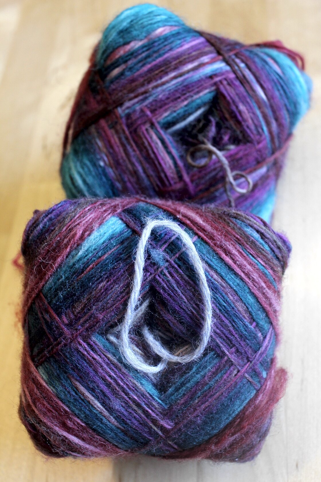 And even if the ball does collapse on itself, like mine did in the photo above, the core will keep the ball open enough to work from and help prevent knots. I was able to ply the rest of this yarn instead of calling the whole thing a loss.
