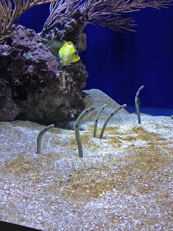To celebrate my birthday on Friday, The Bearded One and I went to The Aquarium of the Pacific in Long Beach. I love visiting Aquariums so this was a great treat. It’s fascinating to watch fish, sharks, jellyfish, and all matter of creatures swim. Some use large tails to get around, some use tiny fins, and others jet around with squirts of water. Seems like I’m getting a peak at an alien world. Plus, I get to see octopuses which are pretty awesome even if they do hide from the camera.