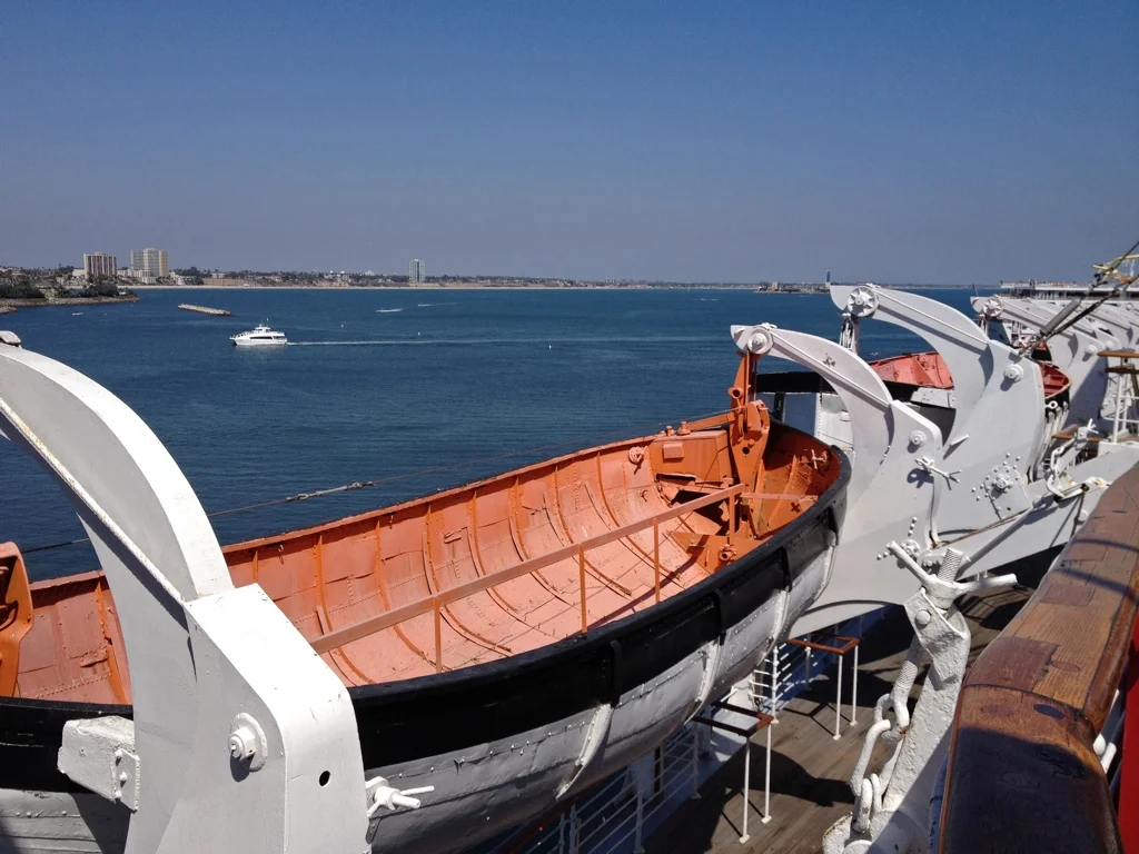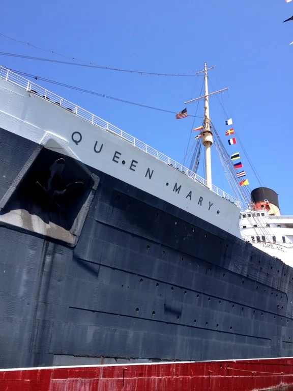 Ever since moving to Los Angeles last year, my Mom’s been telling me to visit the Queen Mary in Long Beach. Took over a year but the Bearded One and I finally went after our visit to the Aquarium of  the Pacific. Since we went during the week, the ship wasn’t crowded and it seemed like we had the place mostly to ourselves. The two of us trekked up and down decks, through quiet hotel corridors (it’s still a functioning hotel), down the promenade, and stopped to catch our breath on the bridge. The history and grandeur of the Queen Mary was impossible to miss and it was easy to image what taking a voyage on the ship during its heyday must have been like.