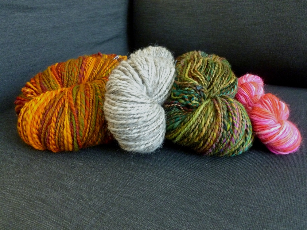 I love learning new yarn constructions and new techniques. The handy Fiber Preparedness Kit packed full of punis, dyed locks, and roving seemed like a good way to branch out from my usual 2-ply. As for the firestar, there’s a drum carder coming my way and I want to make some sparkly batts.