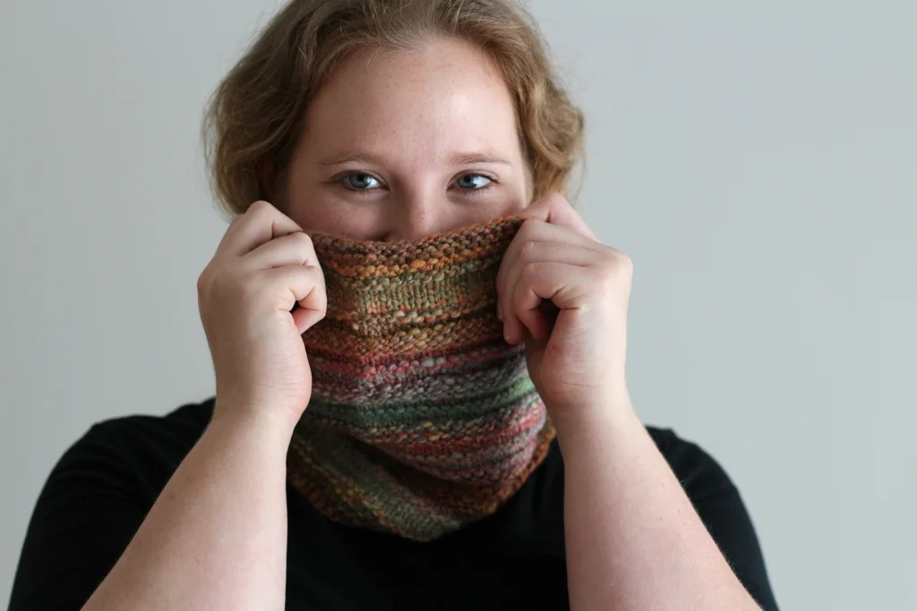 The finished cowl is warm, comfy, and looks great with my favorite coat. It’s also good protection from all the wind whipping through my neighborhood. Now I just have to wait for the temperature to get cold enough to wear it.