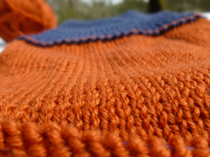It’s a good thing that the DRK Everyday Cowl is an easy pattern to modify once you understand what each section does. My gauge was a little different than recommended, but I had 410 yds to play with so I wasn’t too worried about running out. I was still 6” short of a the adult large size when I had finished knitting the recommended number of repeats. So, I kept repeating section 2 until I had enough length across the top edge. Section 3 saw me decreasing from 130 stitches which is just a smidge more than the pattern. I will admit that I was nervous that I’d have to dig through Yarn Fort with some matching yarn for the i-cord bind off during the last few rows. Thankfully, I had a few yards left over at the very end. Phew!