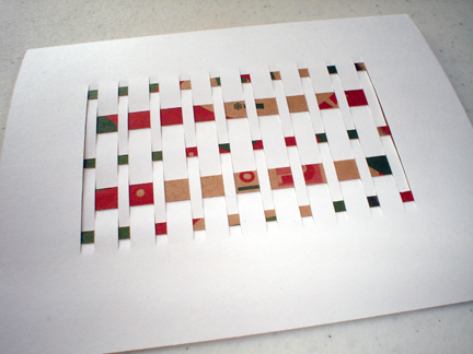 I got the idea for these fun little cards from a tutorial on Crafty Leftovers.com and couldn’t resist making making a special few to give away for Christmas. Once I got all the cutting done, the weaving went fairly quickly. It was a lot of fun to create different patterns and I like the back just as much as the front. These cards veer off from the tutorial just a bit which only goes to show how much variation can be achieved.