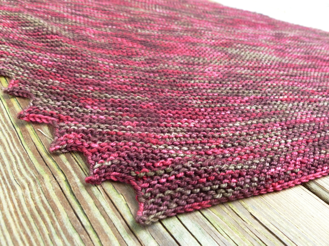 How can I resist a pattern that’s a giant, geeky sci-fi reference? Long story short, I can’t. Hitchhiker had been in my queue for the longest time but, once I decided to cast on, there was no stopping me. I grabbed my needles, wound 2 skeins of Malabrigo Sock, and got started. Once the setup rows clicked in my head, the knitting was smooth sailing. I stuck the shawl in my purse and brought it along on car trips, running errands, and out to lunch. Hitchhiking indeed. Unfortunately, those days came to end when I had to wrap the shawl twice around my arm so I could walk around the mall and knit it at the same time.