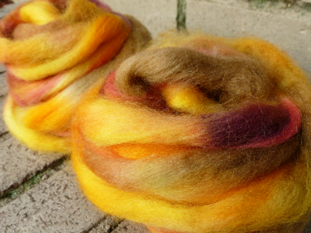 Hmm. I was attempting to spin this fiber into a fingering or sport weight yarn, but a worsted weight might be a more achievable goal with this fiber and spindle combo. Maybe I can try spinning a fingering weight superwash on my wheel later.