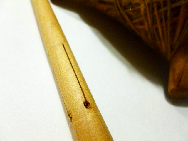 May 29 (Day 53): It was long day and I didn’t get to my spindle until after my spinning buddy had gone to bed. I spent several aggravating minutes with a single that kept falling apart every time I tried to wind more yarn onto the spindle. I’d fix the break, spin more yarn, try to wind it up, and it would break all over again. After the fifth time everything fell apart, I called it quits for the night.
