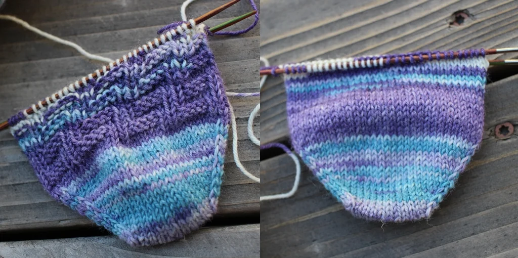 Here’s another pair of socks for purse knitting. I pulled the yarn out of deep stash, #coldsheep, and started a toe. I wanted to knit a slightly more involved pattern since the last two pairs were basic ribbed socks. The stitch pattern for the Escalator Socks caught my eye so I gave it a try. While I liked the pattern, it didn’t mesh well with the yarn. Plus, I like how the colors knit up in stockinette much better. Ripped back to the toe, and going with a 3x1 rib this time. I’m will knit a complicated pair of socks eventually. I hope.