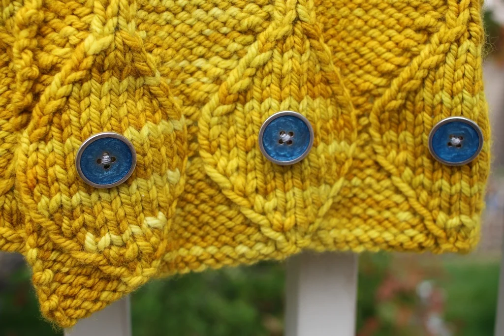 The stitches are bound off and the ends are woven in. Blocking the scarf will be simple (and entirely necessary) which means there’s just one more difficult step before I get to wear it. Which buttons do I choose? Do I go with the earthy, neutral buttons that will blend in or the bright blue buttons that will stand out? I cannot make up my mind.