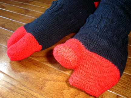 If you've been following this blog for a bit, it should come as no surprise that I love socks. I love knitting them. I love wearing them. I love browsing sites for socks I'd never knit. My sock drawer is actually 2 drawers, well, 3, if you count the one dedicated to the socks I've made. What's more, I have a great love/obsession with every kind of toe sock. Tabi socks, where the big toe is separate from the rest, are a personal favorite. They're fun to wear and, even better, they're fun to knit.