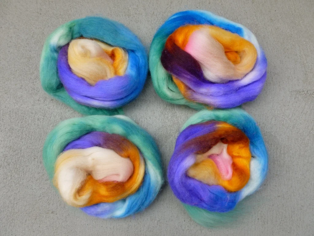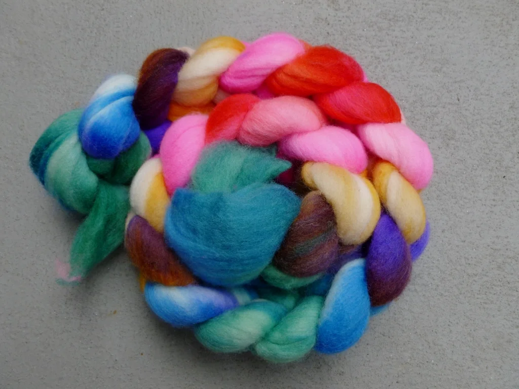 I’m using an 8” dowel and a Fantasy Batt from GwenErin Natural Fibers.