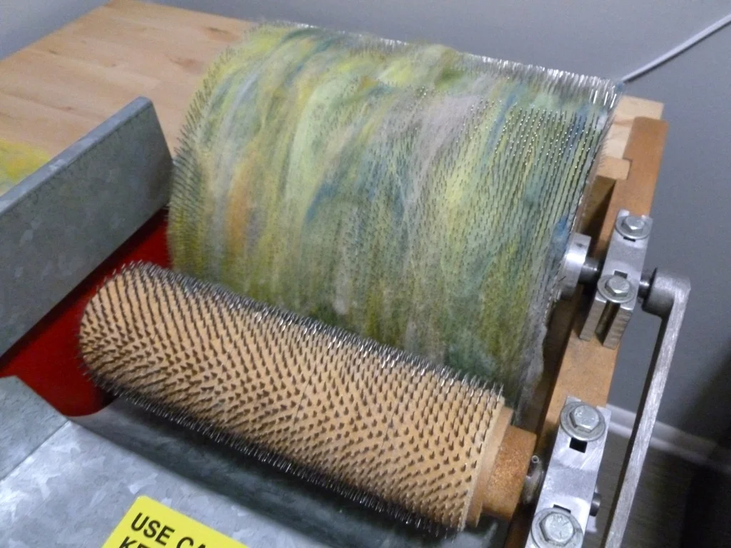 My time with the drum carder is over. It went back at last months and the 4 weeks that I had it were a crash course in carding. I made the first batt because I wanted to see what would happen and it turned out pretty despite my complete lack of knowledge. With one batt under my belt, I decided to do a little research and figure out how to actually use a drum carder. What could you make with one? What could be carded? Maybe more importantly, how do you clean one? I watched videos, read articles, and came across people that knew what they were doing. People that threw in disorganized fiber and had art come out the other side.