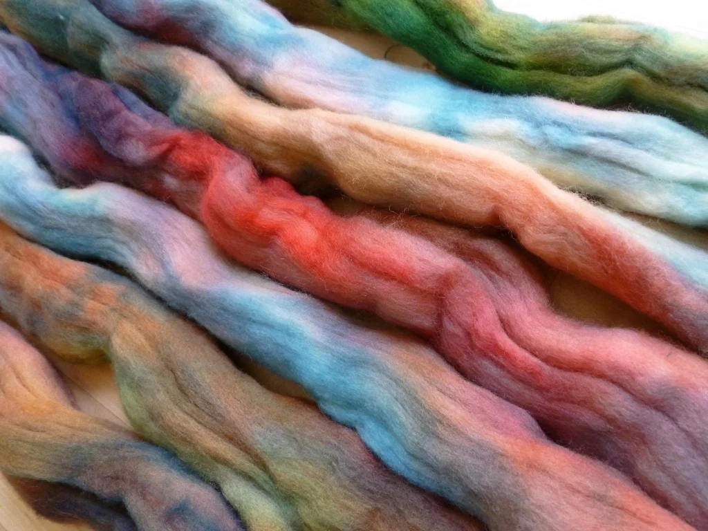 The colors blended beautifully though there are still random spots of solid blue after 3 passes through the carder. Looking forward to spinning it up and seeing the finished yarn.