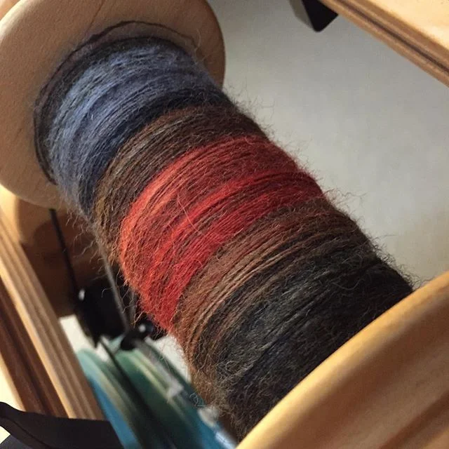 I have one tip for spinning opposing ply yarns which I’ll definitely be using next time around. Spin the opposing ply with less twist than the other plies. When it comes time to ply, the plying twist will give it the remaining twist without creating hard wire.