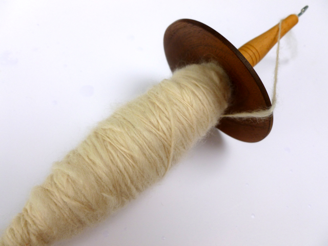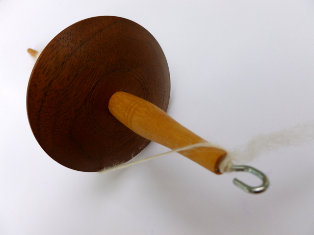 The one exception to the low whorl love is this wonderful high whorl that I couldn’t resist taking home with me. It’s the first high whorl spindle that I’ve actually liked. Plus, I can remove the whorl to pack it down for traveling. If only I could remember who made it.