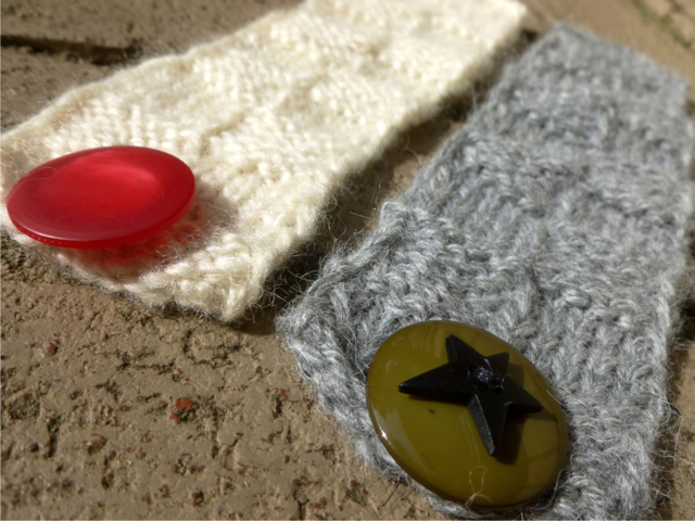 Besides from being quick, the pattern’s pretty versatile too. I think the cuffs would be cute buttoned around gifts, flower pots, or naked table legs. I’m looking at you, Ikea table legs.