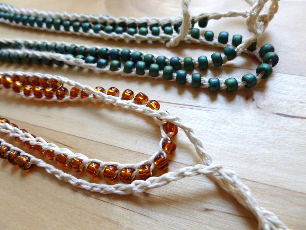 I like wearing this bracelet so much that I’m definitely going to make more as gifts. They don’t take much cord/yarn, I get to play with pretty beads, and my friends get a nice bracelet. Everyone wins.